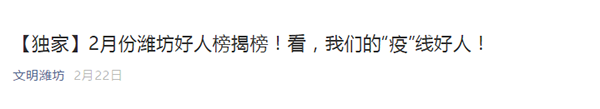 新冠肺炎疫情發(fā)生以來,全市各行各業(yè)涌現(xiàn)出許多感人至深的“好人”事跡,為凝聚抗疫信心,由濰坊市文明辦主辦了“濰坊好人榜”抗疫好人選拔活動,昌大物業(yè)項目經(jīng)理王磊在帶領(lǐng)團隊防疫抗疫過程中表現(xiàn)突出,入選了2020年2月份“濰坊好人榜”。其管轄小區(qū)在區(qū)黨工委相關(guān)領(lǐng)導檢查過程中,因小區(qū)在出入證管理、消殺和重點人群管理等方面的工作受到好評,其做法同時被街道物業(yè)辦在各物業(yè)項目部推廣學習,并在《濰坊晚報》《今日頭條》等新媒體上進行了宣傳報道。