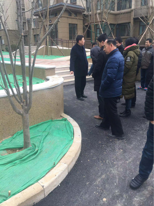 姜建魯帶領(lǐng)陪同人員深入兩個(gè)項(xiàng)目現(xiàn)場(chǎng),對(duì)室內(nèi)和地下車庫施工進(jìn)度、室外綠化景觀配套等情況作了詳細(xì)查驗(yàn)。檢查過程中,對(duì)現(xiàn)場(chǎng)發(fā)現(xiàn)的問題及時(shí)與項(xiàng)目負(fù)責(zé)人進(jìn)行溝通并提出了改進(jìn)措施。